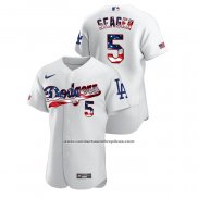 Camiseta Beisbol Hombre Los Angeles Dodgers Corey Seager 2020 Stars & Stripes 4th of July Blanco