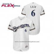 Camiseta Beisbol Hombre Milwaukee Brewers Lorenzo Cain 2019 Postemporada Flex Base Blanco