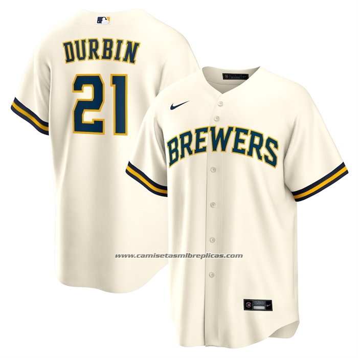 Camiseta Beisbol Hombre Milwaukee Brewers Isaac Collins Primera Replica Crema