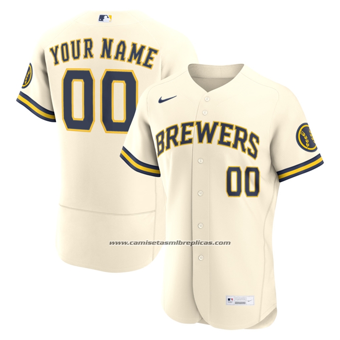 Camiseta Beisbol Hombre Milwaukee Brewers Primera Autentico Personalizada Crema1