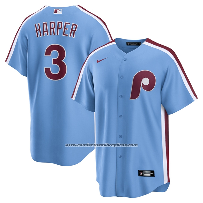 Camiseta Beisbol Hombre Philadelphia Phillies Bryce Harper Alterno Replica Azul Claro