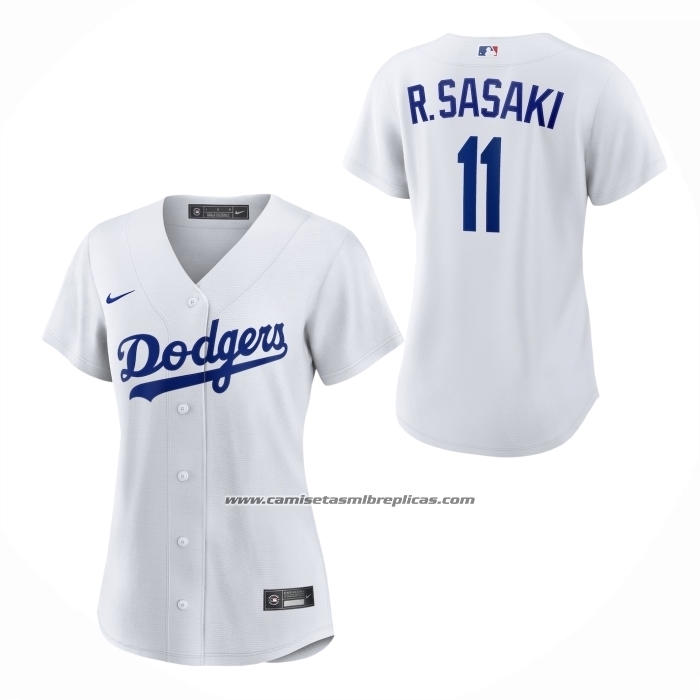 Camiseta Beisbol Mujer Los Angeles Dodgers Roki Sasaki Replica Blanco